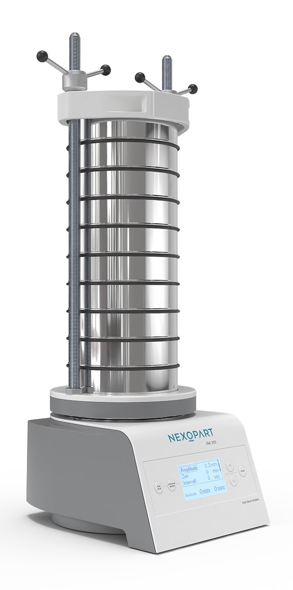 The EML sieve shakers from NEXOPART are based on the principle of a vibrating sieve shaker and enable the preparation and particle size determination of dry and wet bulk solids. They are ideal for separating bulk material particles of different sizes. The electromagnetic drive (EML) ensures a three-dimensional throwing motion of the material to be sieved, which enables fast and accurate particle measurement.