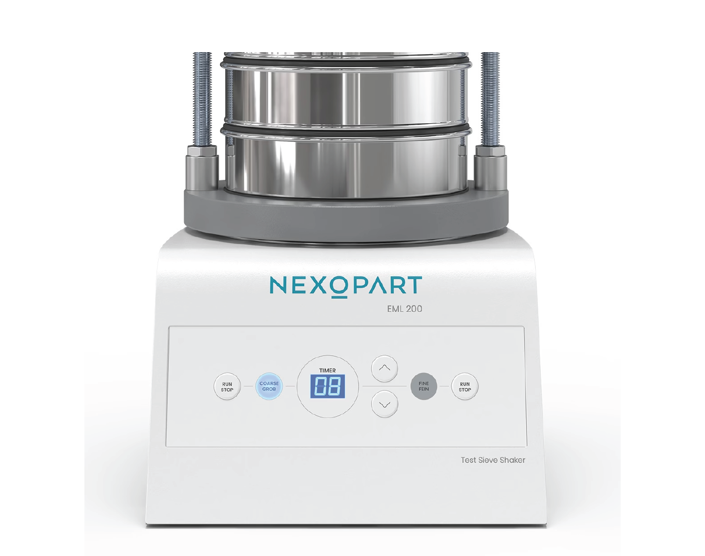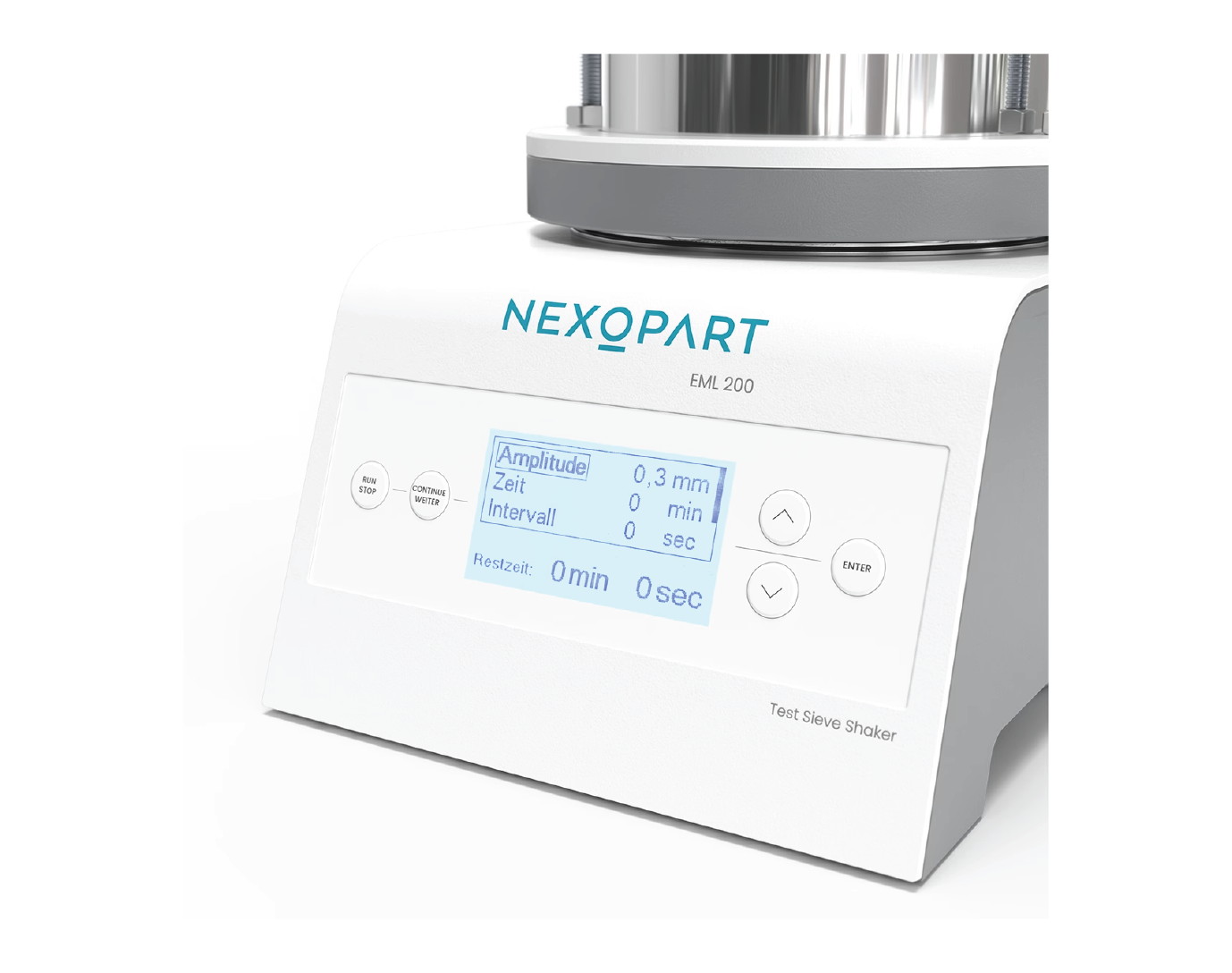 The EML sieve shakers from NEXOPART are based on the principle of a vibrating sieve shaker and enable the preparation and particle size determination of dry and wet bulk solids. They are ideal for separating bulk material particles of different sizes. The electromagnetic drive (EML) ensures a three-dimensional throwing motion of the material to be sieved, which enables fast and accurate particle measurement.