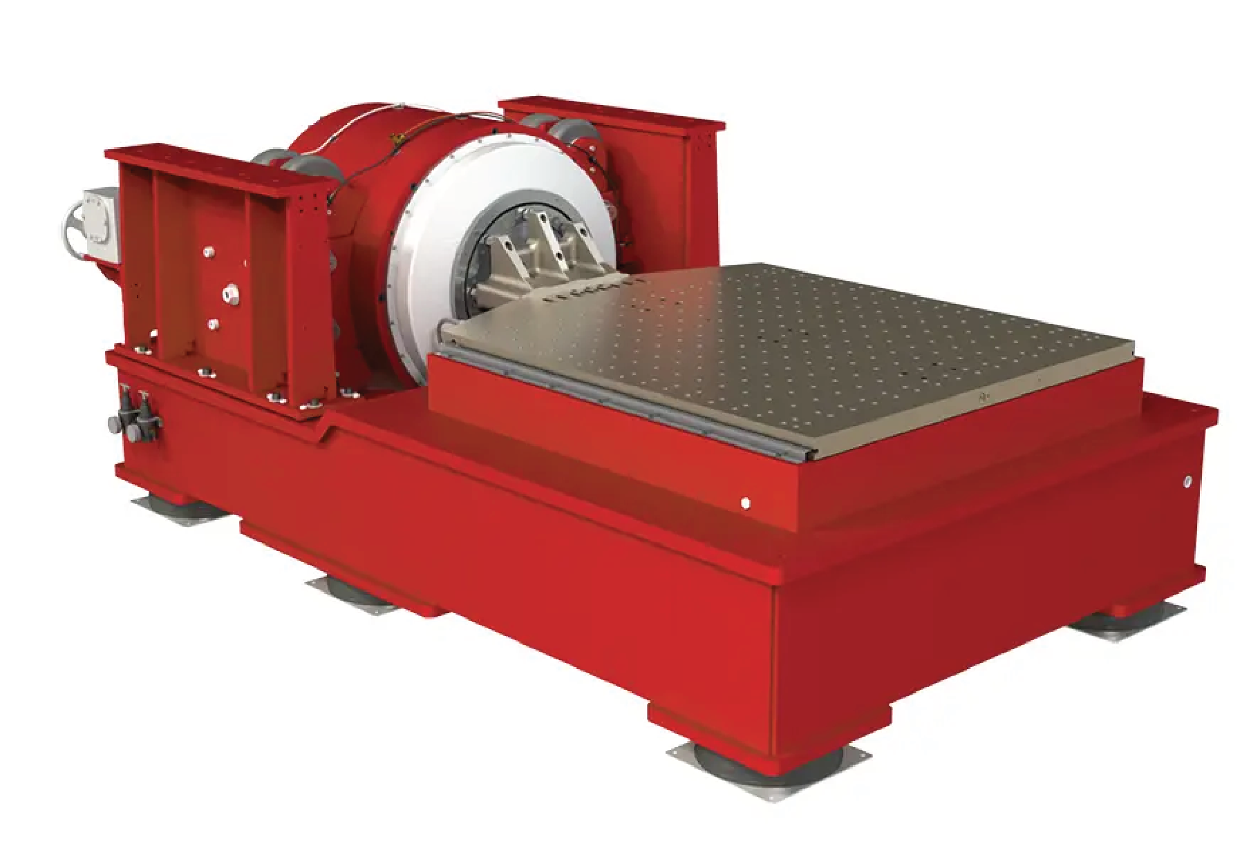เครื่องเขย่าทดสอบแบบระบายความร้อนด้วยน้ำมักถูกใช้สำหรับการทดสอบที่มี น้ำหนักชิ้นงานมาก (Large Payloads) และงานทดสอบโครงสร้างที่ต้องการสมรรถนะสูง โดยใช้ ระบบแบริ่งไฮโดรสแตติกแบบคู่ (Dual Hydrostatic Bearings) ทำให้สามารถทดสอบชิ้นงานที่มี แรงโมเมนต์พลิกคว่ำสูง (High Overturning Moments) ได้ โดยไม่จำเป็นต้องใช้ระบบนำทางภายนอกเพิ่มเติม