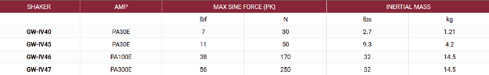 | SHAKER TYPE | FORCE RANGE |