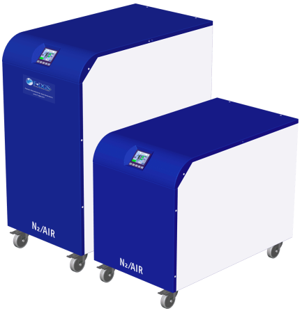 The combined Nitrogen/Air generator use pressure swing adsorption technology (PSA) to produce pure nitrogen gas and an additional bed of activated alumina for air purification